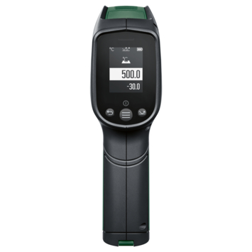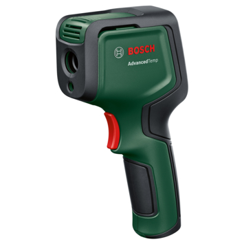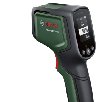 De thermodetector Bosch AdvancedTemp spoort warmtebruggen en schimmelgevoelige plaatsen op. Met een druk op de knop analyseert u slecht geïsoleerde ramen of vindt u niet geïsoleerde plekken bij buitenmuren. Afhankelijk van modus meet de AdvancedTemp kamertemperatuur, oppervlaktetemperatuur van muren en voorwerpen evenals luchtvochtigheid en interpreteert de gegevens. Dit gebeurt door drie sensoren en een software van Bosch zelf. De driekleurige LED geeft volgens het verkeerslicht-principe duidelijke handelingsadviezen. Energie besparen en gezonder wonen!