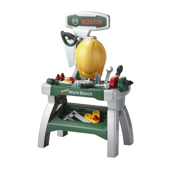 Werkbank Bosch voor de allerkleinste doe het zelver. De werkbank is uitgerust met helm en diverse gereedschappen. Dit speelgoed is geschikt voor kinderen vanaf 2 jaar.
