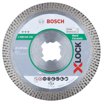 Bosch X-lock diamantschijf 125mm keramiek. Voor droogslijpen in o.a. keramische tegels, natuursteen. Door het sleutelloze X-LOCK systeem wisselt u accessoires van haakse slijpmachines met één simpele klik in slechts enkele seconden.