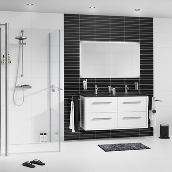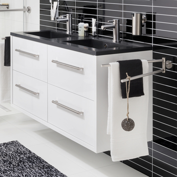 De Tiger Boston kolomkast is krachtig en elegant tegelijk en de mooie ronde greep ligt aangenaam in de hand. Deze brede kolomkast biedt veel ruimte om alle badkamerspullen overzichtelijk op te bergen. De kast is uitgerust met 4 witte legplanken waarvan er 2 in hoogte verstelbaar zijn. De deur is zowel links als rechts monteerbaar en is voorzien van hoogwaardige 'soft close' scharnieren waardoor ze geruisloos sluit.