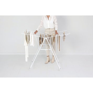 Het Brabantia droogrek HangOn 20 meter is met 20 meter drooglengte de ideale oplossing voor het hele gezin. Geschikt voor de complete inhoud van een wasmachine. Ook is dit droogrek gemakkelijk te verplaatsen, zelfs volledig beladen met wasgoed.