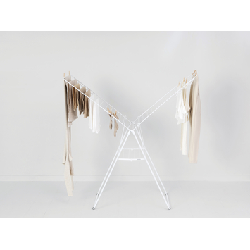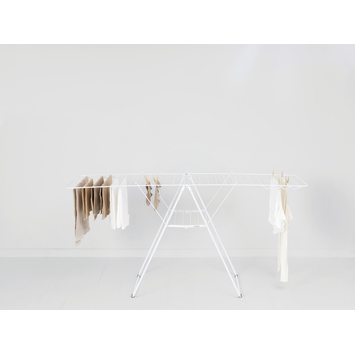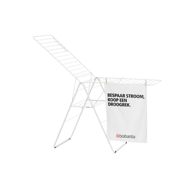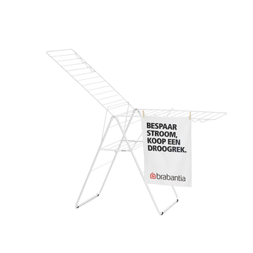 Met het Brabantia HangOn droogrek bespaar je tijd en energie, door je was natuurlijk te drogen. Brabantia's HangOn droogrek heeft 25 meter aan droogruimte en 8 haken om kleerhangers aan te hangen. Is al je was droog? klap het rek dan eenvoudig in tot een klein pakketje en berg 'm op.