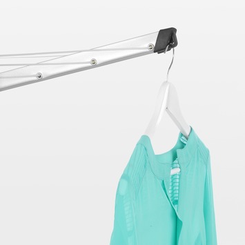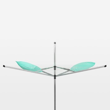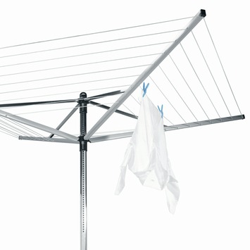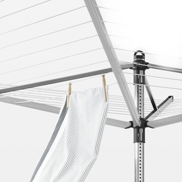 Moeiteloos was ophangen met de Brabantia Lift-O-Matic droogmolen, traploos in te stellen op uw ideale werkhoogte (van 129 tot 187 cm) en altijd strakke drooglijnen. Geen gesjouw met de wasmand, soepeldraaiende armen, zelfs vol (nat) wasgoed. De Brabantia droogmolen 50 meter Lift-O-Matic is inclusief Ø 45 mm metalen grondanker. Buiten je was drogen geeft je wasgoed die frisse geur, je kleren blijven langer mooi en het kost niets – de zon is gratis! En alsof dat nog niet genoeg zou zijn: Brabantia en WeForest planten samen een boom voor elke droogmolen die gekocht wordt.