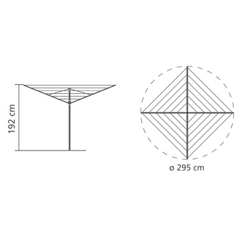 Buiten drogen is beter voor het milieu én uw portemonnee. Weerbestendig - 4 robuuste gelakte stalen armen en een stevige aluminium hoofdbuis (45 mm diameter). Gemakkelijk te bedienen 'paraplu-systeem', drooglijnen naspanbaar. Extra sterk draad, met anti-slip profiel. Met bindkoord en een metalen grondanker.