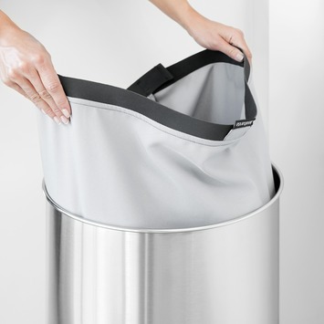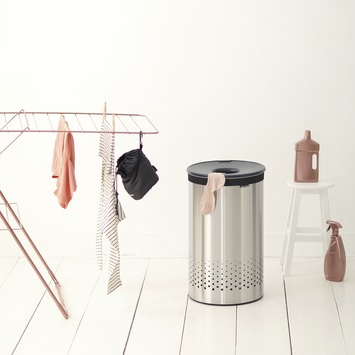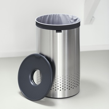 De Brabantia Wasmand RVS met Kunststof Deksel 60 Liter is uitgevoerd in een tijdloos RVS design. De wasbox is dankzij het deksel een praktische en zeer gebruiksvriendelijke accessoire in jouw badkamer, keuken of waskamer. Doordat het deksel is voorzien van een 'Quick-Drop' opening hoef je het deksel niet van de wasmand te halen om er was in te kunnen doen. En moet de was er weer uit? Dan zet je eenvoudig het deksel recht op de rand, zodat je vrij spel hebt om de was uit de wasmand te halen en in de wasmachine te leggen.