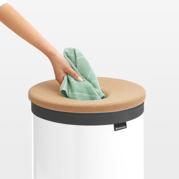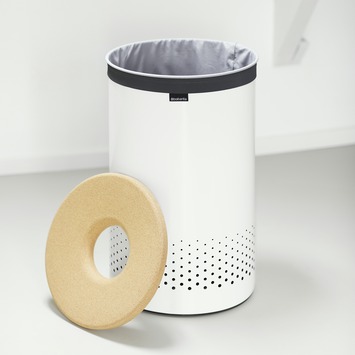 De Brabantia Wasmand Wit met Kunststof Deksel 60 Liter is onmisbaar in je huishouden. De praktische en stijlvolle wasbox is voorzien van een modern Wit design en heeft dankzij het unieke kurkdeksel een warme, natuurlijke uitstraling. De slimme QuickDrop opening in het deksel zorgt ervoor dat je je was te allen tijde in de wasmand kan gooien. Je hoeft hiervoor het deksel niet van de wasmand te halen.
