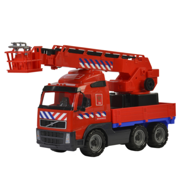 Blus met deze stoere brandweerwagen de brand bij hoge gebouwen! Op deze Volvo vrachtwagen van Polesie zit een kraan met korf, waar de brandweerman (niet meegeleverd) in kan staan. Deze kraan kun je uitschuiven, draaien en verhogen. Onder de wagen zitten 6 wielen die voor extra stabiliteit zorgen. Door het sterke kunststof is deze kraanwagen van hoge kwaliteit. Afmetingen: 58,5x18,5x32 cm. Wordt geleverd in net. Geschikt voor kinderen vanaf 3 jaar.