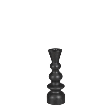 Voor veel gelegenheden is kaarslicht de perfecte manier om een prettige sfeer aan te brengen in je huis. Of het nu gaat om een romantisch diner met je geliefde of om een warme gloed in je huis toe te voegen tijdens de koude winterdagen, kaarslicht heeft een verwarmend en rustgevend effect op iedereen. Om de kaars veilig te laten branden mag een goede kandelaar niet ontbreken. Mica Decorations heeft daarom deze zwarte Breggo-kandelaar ontworpen. Hij is gemaakt van mangohout met een afmeting van 20 cm hoog en 7 cm diameter. Door de brede basis is hij zeer stabiel. De ronde welvingen en neutrale kleur passen hij bij elk interieur.
