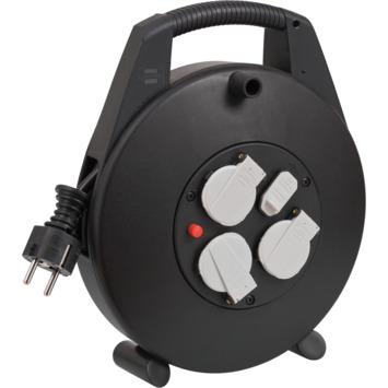 Deze Brennenstuhl Kabelbox 3-voudig + USB Zwart 10 Meter heeft 3 geaarde contactdozen en een USB-poort, welke netjes zijn afgedekt. Het product is geschikt voor gebruik binnenhuis. De kabelbox heeft een mooie, stabiele behuizing van speciaal kunststof, een ergonomisch handvat en een grote stabiliteit door de dubbele voet.