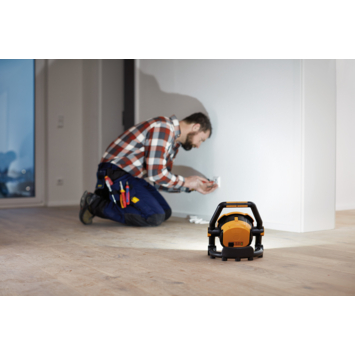 De Brennenstuhl mobiele LED lamp op batterij IP54 beschikt over een energiezuinige geïntegreerde LED van 20 watt met een lichtopbrengst van 1800 lumen. Dit komt overeen met de oude gloeibouwlamp van 150W. De werklamp heeft een behuizing van hoogwaardige kunststof en beschikt over een uitklapbaar frame. Hierdoor kan de werklamp op de vloer geplaatst, maar ook opgehangen worden. Door de vier ingebouwde magneten kan de lamp ook gemakkelijk op een metaaloppervlak bevestigd worden. Zo kunt jede werklamp plaatsen waar jemaar wilt. Door de oplaadbare lithium-ion-batterij is deze werklamp ook geschikt op plekken zonder netstroom. De werklamp wordt geleverd inclusief krachtige adapter voor een korte laadtijd, en een autolader voor onderweg. De lamp heeft ook een powerbank-functie met een USB-laadingang van 2A voor apparaten met USB-laadkabel zoals smartphones, mp3-spelers, tablets etc. Kortom, de Brennenstuhl mobiele LED lamp op batterij IP54 is een multifunctionele lamp voor zowel binnen- als buitenshuis.