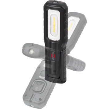 De krachtige, handige en compacte LED-werklamp met geïntegreerde oplaadbare accu is dankzij de IP54-beschermingsgraad (stof- en spatwaterdicht) perfect voor robuust gebruik in werkplaatsen, in de autobranche of voor diverse buitenactiviteiten. Dankzij de traploze dimfunctie (10 tot 100%) heeft de LED-zaklamp een bijzonder lange verlichtingstijd van wel 10 uur. De werkplaatslamp wordt opgeladen via de USB C-laadinterface en met de meegeleverde USB C-laadkabel.