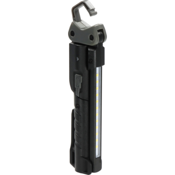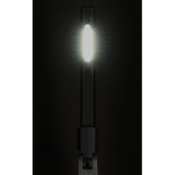 De HL 400 AC oplaadbare LED zaklamp is een extreem slanke LED werklamp met een geïntegreerde 3,7V/0,8Ah Li-Ion batterij en oplaadindicator. De LED lampkop met 3 individueel schakelbare lichtbronnen (hoofdlicht: 3W/400lm, spot: 1W/120lm en lichtbron op de achterkant: 1,5W/200lm) is opvouwbaar. Met de 3 geïntegreerde magneten, de clip en de uitklapbare haak kan de inspectielamp flexibel worden bevestigd en garandeert zo handsfree werken, bijv. in huis, in werkplaatsen of bij reparaties aan voertuigen.De zaklantaarn met oplaadbare batterij en USB C oplaadinterface (60cm USB A naar C oplaadkabel inbegrepen) zorgt voor flexibel en snel opladen - oplaadtijd ca. 2,5 uur (oplaadindicator knippert tijdens het opladen)