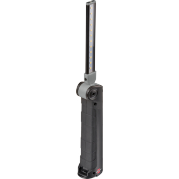 De snoerloze LED-handlamp SANSA 401 A is een extreem slanke en smalle LED-werklamp met 3,7V/2,0Ah Li-Ion-accu en oplaadindicator. Dankzij het rubberen oppervlak ligt de LED zaklamp perfect in de hand. Met de geïntegreerde magneten en de uitklapbare haak kan de inspectielamp flexibel worden gebruikt en zorgt zo voor handsfree werken met volledige lichtopbrengst. De lichtopbrengst wordt individueel aangepast met een wiel op het lamphuis - dit maakt perfect dimmen voor elke toepassing mogelijk. De lichtduur is minimaal 3,5u (bij 100% lichtintensiteit) en maximaal 80u (bij 10% lichtintensiteit). De oplaadtijd is ca. 3u