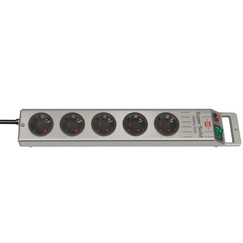De Super-Solid-Line stekkerdoos van Brennenstuhl heeft 5 stopcontacten. Zo komt u nooit meer een stopcontact tekort. Op deze stekkerdoos met DE stekkersysteem kunt u meerdere elektronische apparaten tegelijkertijd aansluiten. Doordat de stopcontacten in een hoek van 45graden zijn geplaatst, vallen de stekkers niet over naastliggende stopcontacten en kunt u de stekkerdoos optimaal benutten. De zilver en zwartkleurige stekkerdoos heeft een verlichte schakelaar en een snoer van 2,5meter lengte en een diameter van 1,5mm. Met de schakelaar schakelt u de stekkerdoos zelf aan of uit. Bovendien is de stekkerdoos beveiligd voor kinderen. De 5-voudige stekkerdoos is gemaakt van sterk kunststof en is 44,5cm lang. Dankzij het bevestigingssysteem aan de achterkant van de stekkerdoos kunt u deze heel eenvoudig op een handige plek monteren, bijvoorbeeld aan een poot van uw bureau zodat de stekkerdoos en het snoer niet in de weg zitten.