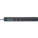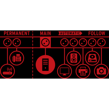 Secure-Tec 19.500 A automatische stekkerdoos met overspanningsbeveiliging Met digitale master/slave-functie en overspanningsbeveiliging. Beveiligd waardevolle apparaten tegen overspanning met een max. lekstroom tot 19.500 A. De stekkerdoos beschikt over twee permanent stekkers, die blijven altijd aan. Tevens beschikt de stekkerdoos over een hoofdschakelaar of "master", die stuurt de volgschakelaars "slaves" aan. Als de voeding, die in de master is geplugd, in de aan- of uitstand wordt geschakeld, volgen de - slaves -, door de aangesloten toestellen trapsgewijs aan en/of uit te schakelen. Hoger comfort dankzij 1 master- (3500 W) en 5 slave-stopcontacten (3500 W). Instelbare schakelgrenswaarden (ca. 8 tot 80 W).