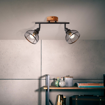 Brilliant opbouwspot Avia 2x E14 zwart/hout43.49