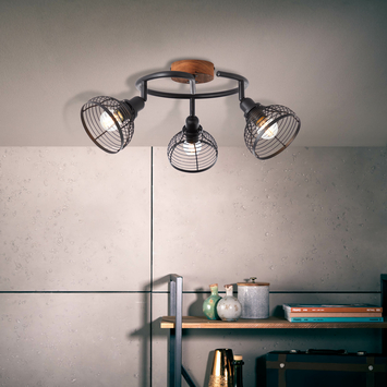 Brilliant opbouwspot Avia 3x E14 zwart/hout