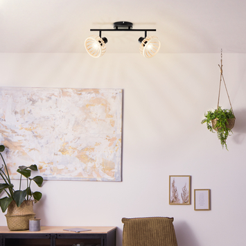 Ontdek de veelzijdige 99738/76 Brilliant Plafondlamp Norah, een combinatie van modern design en functionaliteit. Deze richtbare plafondlamp met E14 fitting biedt gericht licht dat elke ruimte verrijkt. Het houten accent en het zwarte frame geven een eigentijdse uitstraling die perfect past in diverse interieurstijlen.