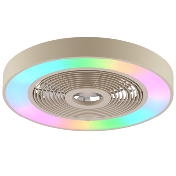 De Brilliant Catania plafondventilator combineert stijl en functionaliteit in één elegant ontwerp. Het beige design past perfect in moderne interieurs. De krachtige ventilator zorgt voor een aangename luchtcirculatie, terwijl de geïntegreerde LED-lamp met 4000 lumen dimbaar is en dankzij CCT-technologie instelbare lichtkleuren biedt van warm tot koel wit. Met de RGB-functie creëer je dynamische kleureffecten voor extra sfeer. De afstandsbediening maakt het eenvoudig om zowel verlichting als ventilator te bedienen. De Catania is dé keuze voor wie comfort en design wil samenbrengen in elke ruimte.