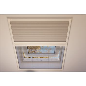 Deze duoplisséhor biedt een gebruiksvriendelijke en duurzame oplossing voor een comfortabel binnenklimaat en optimale bescherming tegen insecten. Houd rekening met de beperkte kanteling van het dakraam bij een gesloten hor.