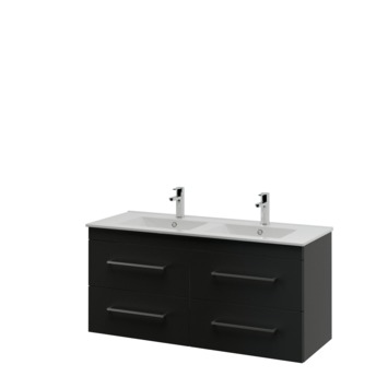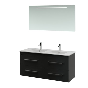 Deze badkamermeubel set bestaat uit een zwarte onderkast van 120x45x65cm, vierkante grepen van 33x3x2cm, keramische wastafel van 120x46x18cm met een halfronde vorm en een ruimtebesparende grijze afvoerbuis van 30x3x4cm. In de lades onder de keramische wastafel is voldoende plek voor handdoeken en spullen voor je persoonlijke hygiëne. Mocht dat toch niet voldoende opbergruimte lijken, dan heeft deze set nog een kolomkast die naadloos aansluit en apart verkrijgbaar is. Deze set is in breedtematen 60cm, 90cm en 120cm te leveren en te variëren met verschil in kleur van de onderkast en vormgeving van de grepen. Kijk daarom naar deze Bruynzeel Elements badkamermeubel set 120cm zwart met vierkante greep, maar vergeet de overige keuzes binnen deze serie niet!