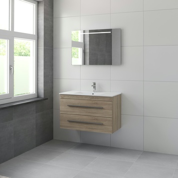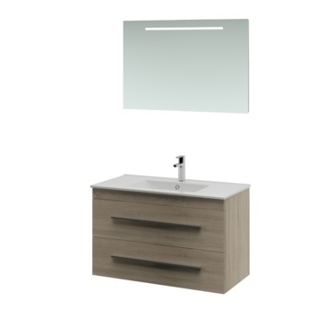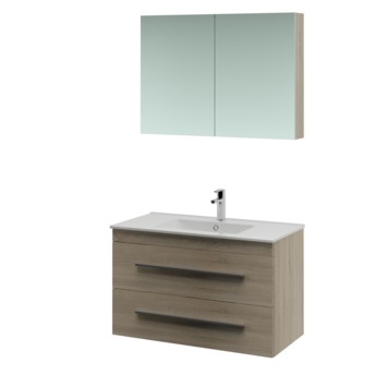 Deze badkamermeubel set bestaat uit een grijs eiken onderkast van 90x45x65cm, profielgrepen van 50x3x2cm, keramische wastafel van 90x46x18cm met een halfronde vorm en een ruimtebesparende grijze afvoerbuis van 30x3x4cm. In de lades onder de keramische wastafel is voldoende plek voor handdoeken en spullen voor je persoonlijke hygiëne. Mocht dat toch niet voldoende opbergruimte lijken, dan heeft deze set nog een kolomkast die naadloos aansluit en apart verkrijgbaar is. Deze set is in breedtematen 60cm, 90cm en 120cm te leveren en te variëren met verschil in kleur van de onderkast en vormgeving van de grepen. Kijk daarom naar deze Bruynzeel Elements badkamermeubel set 90cm grijs eiken met profielgreep, maar vergeet de overige keuzes binnen deze serie niet!