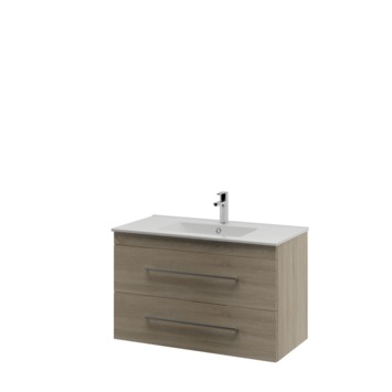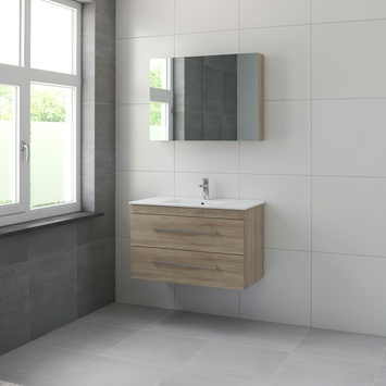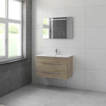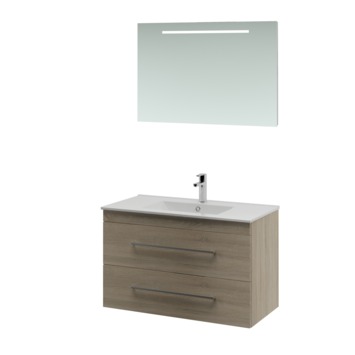 Bruynzeel Elements badkamermeubel set 90cm grijs eiken met vierkante greep