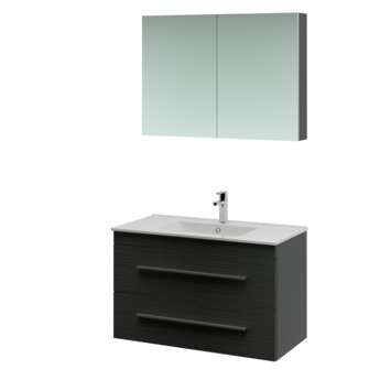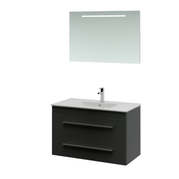 Deze badkamermeubel set bestaat uit een hacienda zwarte onderkast van 90x45x65cm, profielgrepen van 50x3x2cm, keramische wastafel van 120x46x18cm met een halfronde vorm en een ruimtebesparende grijze afvoerbuis van 30x3x4cm. In de lades onder de keramische wastafel is voldoende plek voor handdoeken en spullen voor je persoonlijke hygiëne. Mocht dat toch niet voldoende opbergruimte lijken, dan heeft deze set nog een kolomkast die naadloos aansluit en apart verkrijgbaar is. Deze set is in breedtematen 60cm, 90cm en 120cm te leveren en te variëren met verschil in kleur van de onderkast en vormgeving van de grepen. Kijk daarom naar deze Bruynzeel Elements badkamermeubel set 90cm hacienda zwart met profielgreep, maar vergeet de overige keuzes binnen deze serie niet!