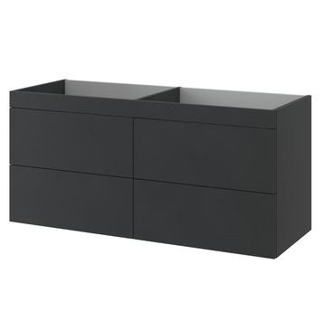 Deze onderkast van Bruynzeel Elements van 120 cm breed en 45 cm diep biedt ruimte aan 2 wasbakken. De kast is uitgevoerd in dubbel grafiet en heeft 4 laden. Dat biedt ieder gezinslid veel ruimte voor handdoeken en toiletspullen. Omdat de kast wordt opgehangen, geeft dat een ruimtelijke uitstraling.