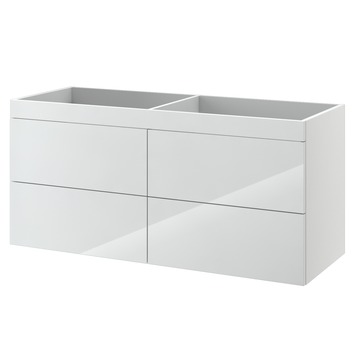 Deze onderkast van Bruynzeel Elements van 120 cm breed en 45 cm diep biedt ruimte aan 2 wasbakken. De kast is uitgevoerd in dubbel hoogglans wit en heeft 4 laden. Dat biedt ieder gezinslid veel ruimte voor handdoeken en toiletspullen. Omdat de kast wordt opgehangen, geeft dat een ruimtelijke uitstraling.
