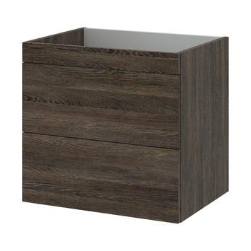 Deze onderkast van Bruynzeel Elements van 60 cm breed en 45 cm diep biedt ruimte aan wasbak. De kast is uitgevoerd in wengé en heeft 2 laden. Dat biedt veel ruimte voor handdoeken en toiletspullen. Omdat de kast wordt opgehangen, geeft dat een ruimtelijke uitstraling.