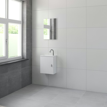 Dit compacte fonteinmeubel mistaat niet in de kleinere badkamer en toiletruimtes. Het Softclose deursysteem zorgt ervoor dat de deur altijd zachtjes sluit. Wanneer je het kastje iets te hard sluit remmen de scharnieren de deur af waardoor je het houtwerk niet beschadigd. Dit Bruynzeel Fonteinmeubel Evi Mat Wit 22x40x50 cm is mat wit afgewerkt, maar je kunt het fonteinmeubel ook in kalk eiken in de GAMMA webshop kopen. Het bevestigingsmateriaal is inbegrepen dus je kunt direct aan de slag! Helaas zul je de kraan nog even moeten uitzoeken, maar GAMMA heeft keuze genoeg. De Bruynzeel Spiegel Evi is los verkrijgbaar in de kleuren mat wit en kalk eiken.