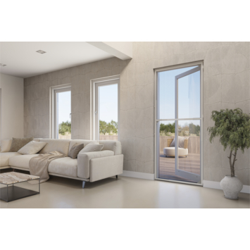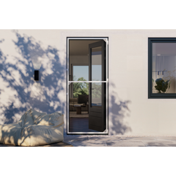 Het aluminium frame met zwart glasfiber gaas kan zowel links als rechts op het kozijn worden geplaatst. Voor naar buiten draaiende deuren monteer je de hor aan de binnenzijde, bij naar binnen draaiende deuren aan de buitenzijde. Geïntegreerde borstels zorgen voor een nette en stille afsluiting en de slanke profielen maken de hordeur ideaal voor montage tussen het kozijn en een rolluik.