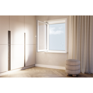 Zodra de hor volledig gereed is, plaats je hem van binnenuit in het kozijn van je raam. De inzethor hangt aan de buitenzijde, waardoor je het raam gewoon kunt openen en sluiten zonder de hor te hoeven verwijderen. Extra dunne flenzen zorgen ervoor dat het raam probleemloos sluit.