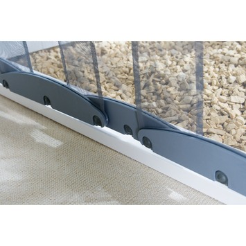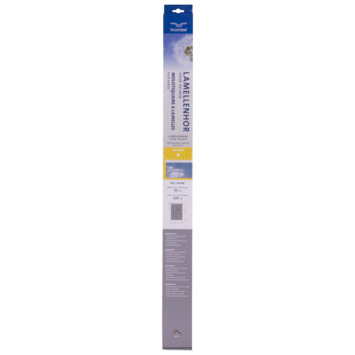 De lamellenhor 300 serie voor deuren heeft 4 lamellen van 30 cm breed en zijn ideaal voor kinderen en huisdieren. De grijze lamellen bevestigt u eenvoudig op het kozijn met het witte kunststof bevestigingsprofiel. Geschikt voor naar binnen en naar buiten draaiende deuren. De hor is ook makkelijk te verwijderen en te herplaatsen. De verzwaringsplaten zijn in grijs kunststof en eenvoudig onder aan de lamellen te bevestigen met rubber dopjes.