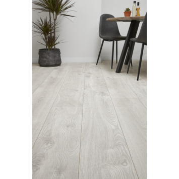 Ontdek de perfecte harmonie tussen elegantie en functionaliteit met het Bruynzeel laminaat Extra Breed Waterbestendig lief lichtgrijs. Waterbestendig laminaat van Bruynzeel is o.a. geschikt om te leggen in badkamers, keukens en andere ruimtes waar er nu en dan gemorst wordt. Voor een optimaal resultaat werk je de randen rondom af met een waterbestendige siliconenkit. Het waterbestendige laminaat is bestand tegen vocht voor een periode van 48 tot 72 uur. Desondanks adviseren we vocht direct te verwijderen bij het signaleren ervan. De lief lichtgrijs kleur geeft de vloer een rustieke uitstraling passend bij een verscheidenheid aan interieurstijlen. Het extra brede laminaat is 30% breder dan gewoon laminaat. Aan alle zijden van de laminaatplank met voelbare houtstructuur bevinden zich V-groeven, waardoor deze de authentieke look krijgt van een echte houten plank. Met een klikverbinding is het laminaat eenvoudig te leggen, wat resulteert in een naadloos effect. Bovendien kan het laminaat zwevend worden geplaatst, zonder dat het aan de ondervloer vastgelijmd hoeft te worden. De laminaatvloer is in combinatie met de juiste ondervloer prima geschikt voor eventuele vloerverwarming aan de hand van warmwaterbuizen. Het kliklaminaat maakt gebruik van antislip wat zorgt voor extra grip en stabiliteit om vallen te voorkomen. Het supersterke basismateriaal HDF (High Density Fiberboard) is PEFC gecertificeerd, wat betekent dat het hout afkomstig is uit duurzaam beheerde bossen. Laminaat is bovendien makkelijk te reinigen en daarmee zeer onderhoudsvriendelijk. De laminaatvloer heeft een dikte van 8 mm, wat bijdraagt aan een goede stabiliteit en het product geschikt maakt voor zowel intensief commercieel gebruik als intensief woongebruik. De verpakking bevat 6 lamellen wat resulteert in een totale inhoud van 2.02 m².