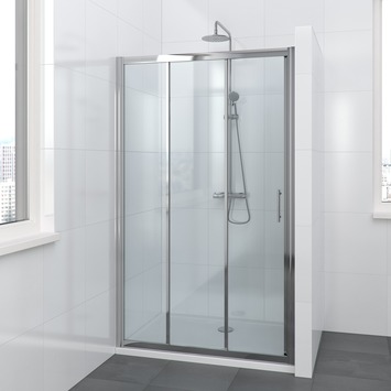 De Bruynzeel Lino 3-delige schuifdeur 120x195 cm is zowel in een nis tussen 2 muren, als in combinatie met de Bruynzeel Lino zijwand in een hoek te plaatsen. Tevens bepaal je zelf aan welke kant de opening moet komen. De wand heeft een verstelbaarheid van 117 tot 121 cm wanneer deze in een nis wordt geplaatst en van 117,5 tot 119,5 cm wanneer deze in combinatie met een zijwand wordt geplaatst. Door deze grote verstelbaarheid is de douchewand makkelijk waterpas te plaatsen. Te plaatsen op een douchebak, een dorpel of direct op de tegelvloer.