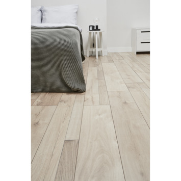 Het Bruynzeel Origineel Plus Laminaat nostalgisch naturel 4V-Groef 8 mm 2,4 m² heeft een voelbare houtstructuur en een rustieke uitstraling. De vloer heeft een klikverbinding, waardoor het leggen van het laminaat eenvoudig is en deze een naadloos effect heeft. Daarnaast kan je de vloer zwevend leggen, waardoor deze niet aan de ondervloer hoeft te worden gelijmd. Laminaat is zeer onderhoudsvriendelijk omdat het eenvoudig te reinigen is. Dit kliklaminaat is geschikt voor intensief woongebruik en normaal commercieel gebruik.