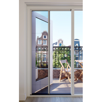 Dankzij de ondergeleider van slechts 10 mm blijft de doorgang laag en comfortabel. De hor is afgewerkt met een lichtgrijze kunststof cassette en bovenprofiel, een aluminium greeplijst in lichtgrijs RAL 7047 en een antracietkleurig kunststof onderprofiel. Voor onderhoud is de hor eenvoudig los te halen en schoon te maken met een vochtige doek of lauw sopje.