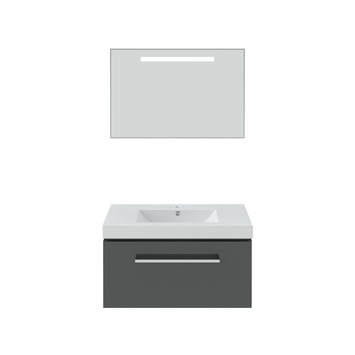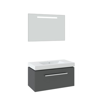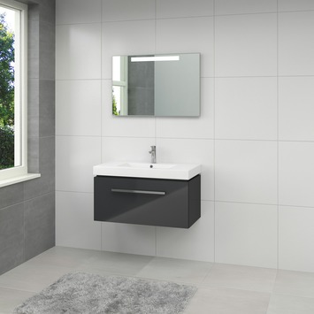 Deze Bruynzeel Solid badmeubelset bestaat uit een onderkast, wasbak en spiegel met geïntegreerde verlichting. De onderkast is 90cm breed, 50cm lang en 46cm diep. Zoals de naam al zegt is de Solid een robuust badkamermeubel. De wastafel is uitgevoerd in wit keramiek en de spiegel is voorzien van fraaie geïntegreerde verlichting. De kast is antraciet gelakt en heeft een verchroomde aluminium handgreep. De set is uit te breiden met een kolomkast en handdoekrail. Bruynzeel is een merk dat garant staat voor productontwikkeling, innovatie en kwaliteit. Het bedrijf komt voort uit de stoomtimmerfabriek De Arend in Rotterdam, opgericht door Cornelis Bruynzeel senior. In 2004 werd de naam veranderd in Bruynzeel Home Products. Het assortiment omvat zowel badkamerproducten, vloeren, deuren, horren als kastsystemen op maat.