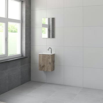 Deze Bruynzeel Spiegel Evi Kalk Eiken 40x60 cm hoort bij de Evi serie en past daardoor perfect boven een Bruynzeel Onderkast Evi of Bruynzeel Fonteinmeubel Evi. Je hebt daarbij de keuze uit de kleuren mat wit en kalk eiken. De rand van deze spiegel heeft een gekalkte eiken afwerkstrip. Het bevestigingsmateriaal is inbegrepen dus je kunt direct aan de slag!