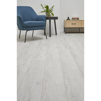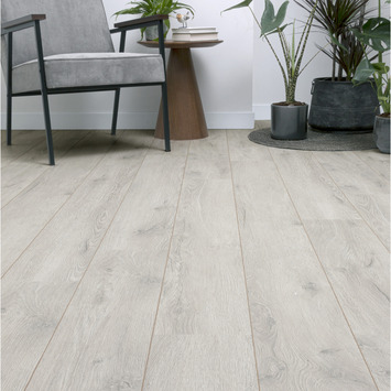 Het Bruynzeel Waterbestendig Laminaat waanzinnig wit 2V-Groef 8 mm 2,13 m² heeft een voelbare houtstructuur en een landelijke uitstraling. De vloer heeft een klikverbinding, waardoor het leggen van het laminaat eenvoudig is en deze een naadloos effect heeft. Daarnaast kan je de vloer zwevend leggen, waardoor deze niet aan de ondervloer hoeft te worden gelijmd. Laminaat is zeer onderhoudsvriendelijk omdat het eenvoudig te reinigen is. Dit kliklaminaat is geschikt voor intensief woongebruik en normaal commercieel gebruik.