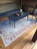 Het grafische dessin valt op zonder te druk te worden en past goed bij moderne tuinmeubels. Het materiaal is slijtvast, kleurvast en waterbestendig, waardoor je het kleed zowel binnen als buiten zonder zorgen gebruikt. Een praktische keuze voor iedereen die snel meer sfeer wil toevoegen aan de buitenruimte.
