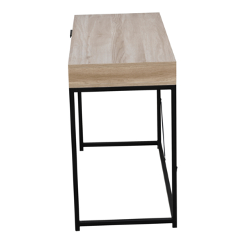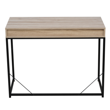 De hoogte van Bureau Bart is 76 cm, de breedte is 100 cm en de diepte is 45 cm. De hoogte van de grond tot het bureaublad is 66 cm.