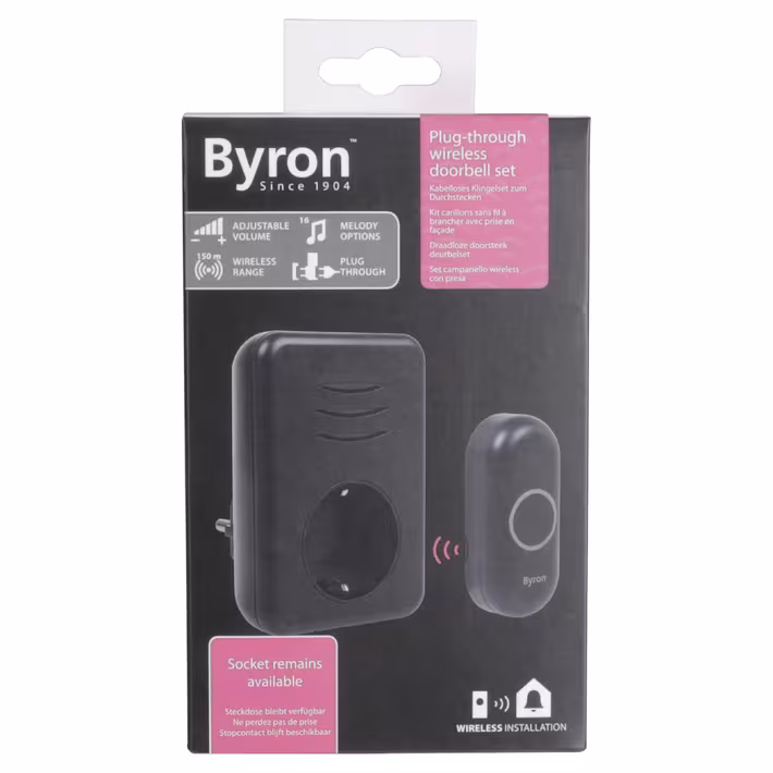 Byron DBY-22353 Draadloze deurbelset plugin met stopcontact 150m zwart