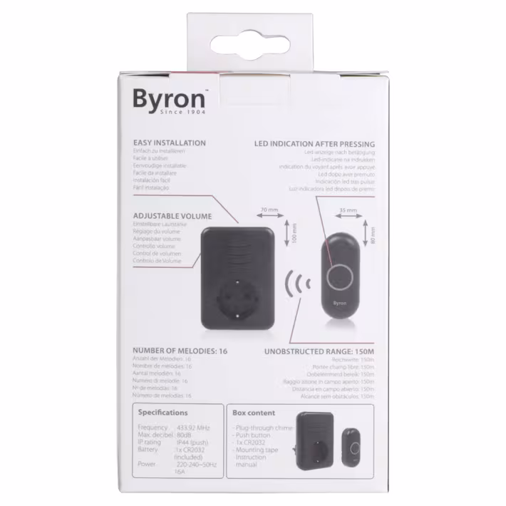 Kenmerken van de Byron DBY-22353 Draadloze deurbel: