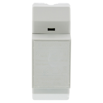 De Byron transformator 8 volt is voor gongen die niet met batterijen werken.