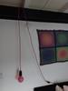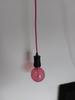 Mooie roze kabel, zelf eenvoudig een simpele maar in het oog springende hanglamp van te maken i.c.m. Calex lamphouder en Handson snoerschakelaar.