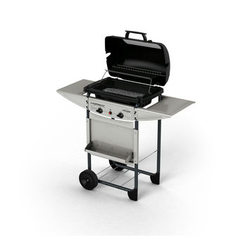 Een compacte buitenkeuken die niet misstaat in je tuin. De Campingaz barbecue expert super metaal 40x31 cm heeft twee gietijzeren branders die je ieder apart in kunt stellen. Zo kun je eenvoudig verschillende soorten ingrediënten op de juiste temperatuur bereiden. Het rooster is geëmailleerd wat ervoor zorgt dat deze niet snel roest en bovendien makkelijk schoon te maken is. De twee inklapbare zijtafels zorgen voor extra werkruimte. Kortom: een prettige barbecue voor meerdere personen.