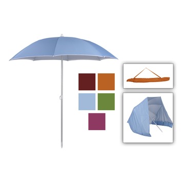 Deze parasol is ook te gebruiken als windsscherm door middel van de bijgeleverde zijstukken en fiberglas stokken. Daarmee is de parasol ideaal voor op de camping en op het strand.